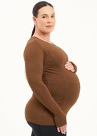 Bamboo Maternity & Breastfeeding Long Sleeved Top - Coffee