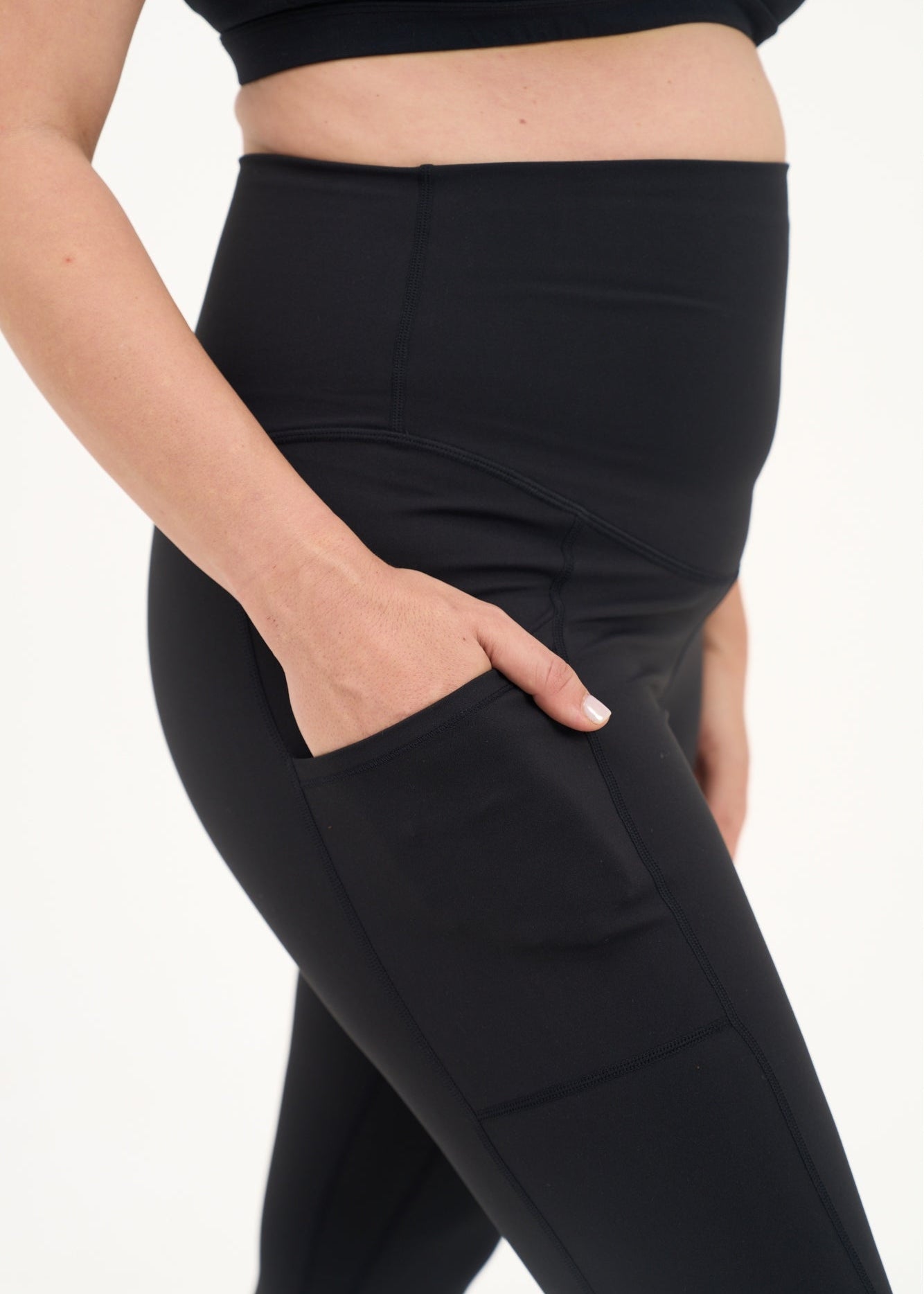- High, seamless over-bump waistband grows with your bump - fold it down for a postnatal fit